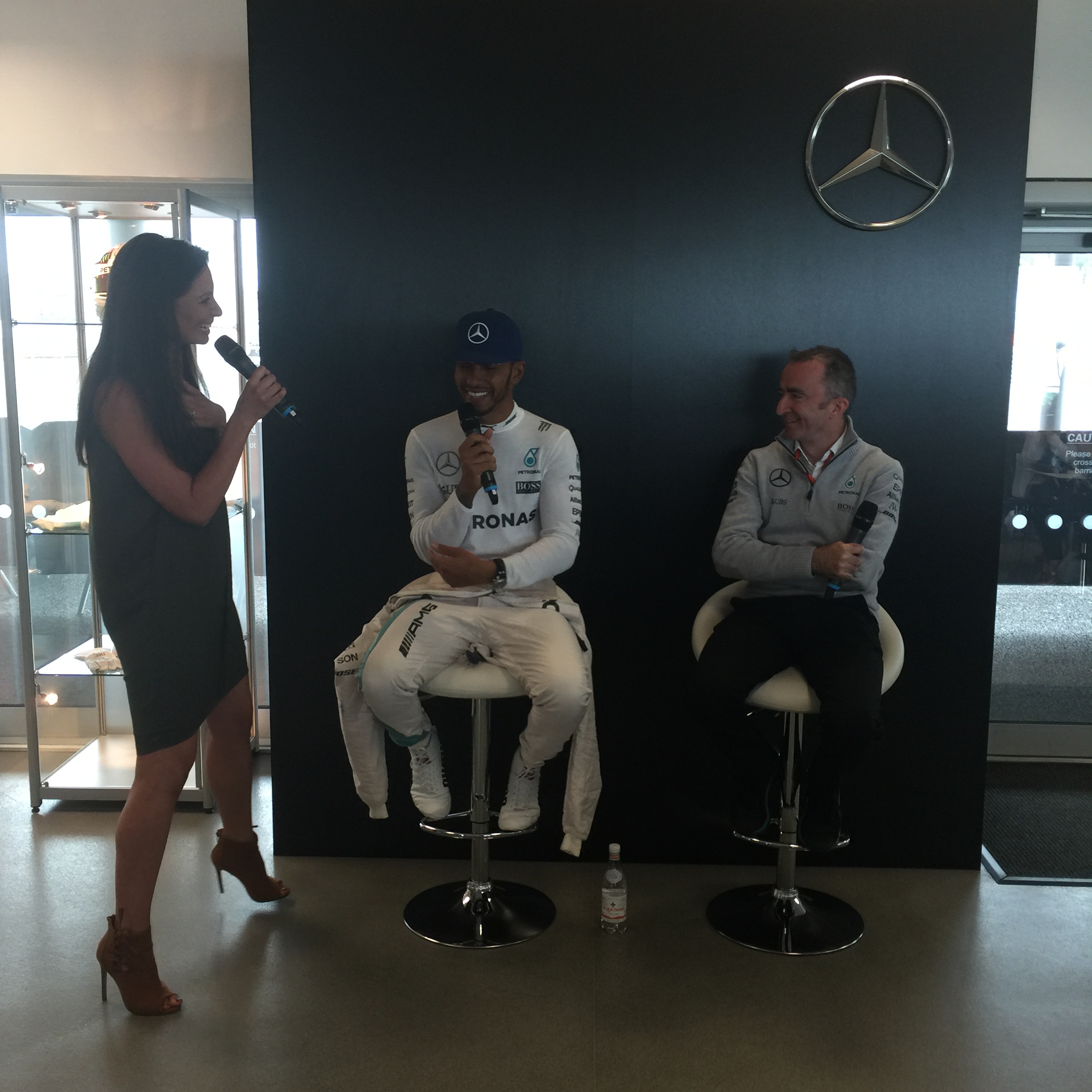 Torie Campbell chats to Lewis Hamilton and Paddy Lowe